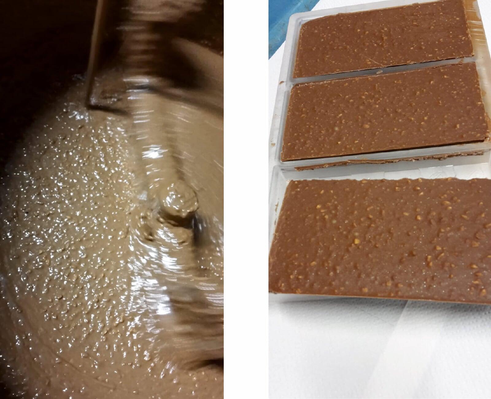 - Bei Nutzung von Ingredienzien in der Schokolade (Festsetzen von Stücken in der Schnecke)